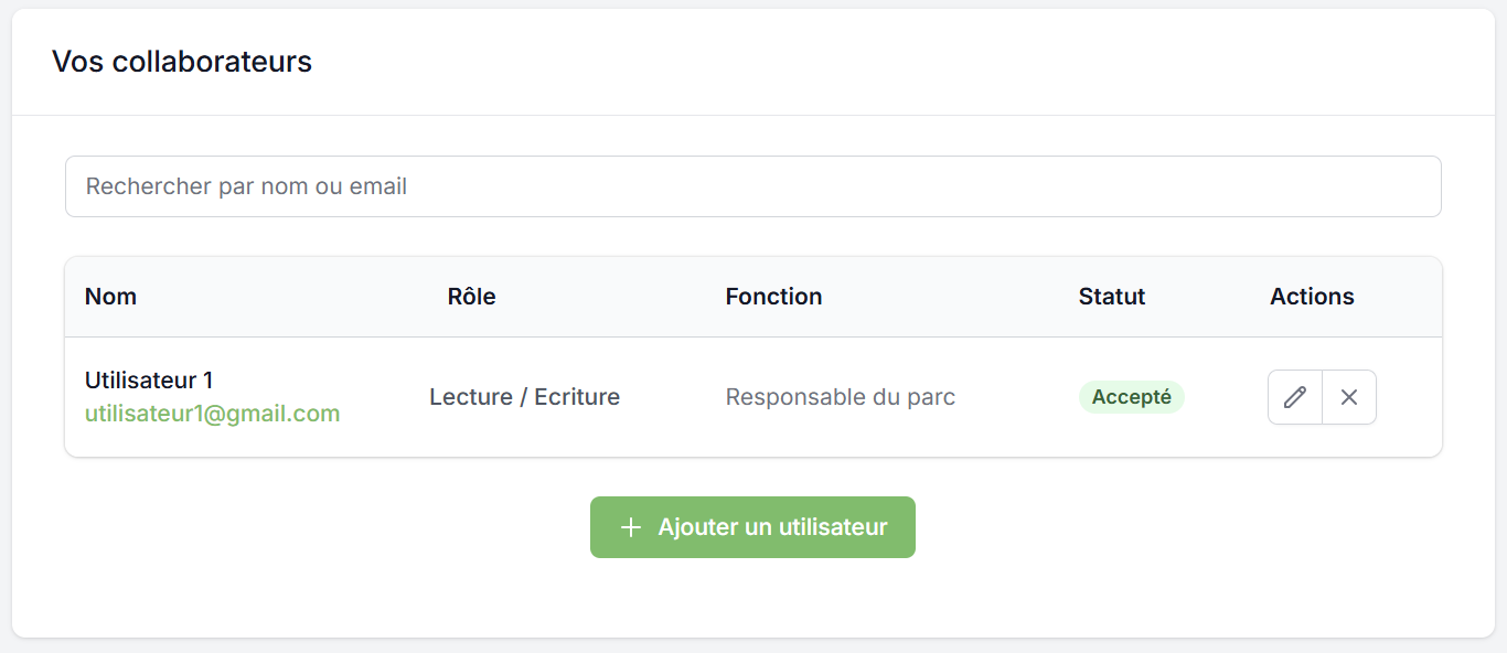 Vous pourrez gérer vos collaborateur en bas de la page des paramètres de la structure.